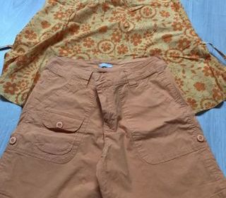 Ensemble short + liquette Orange/beige T. 36 Ensemble - short uni ORANGE,poches devant et dans le dos - liquette orange pale et cercle orange, fines bretelles et ceinture marqu