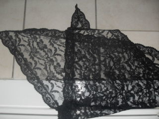 ancienne mantille noire - bordée d'une dentelle - 150 cm x 50 cm - parfait état