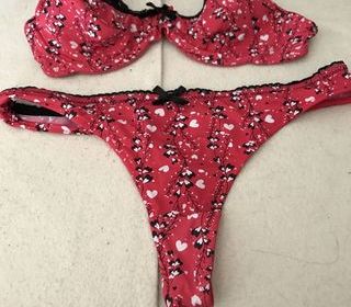DIVERS ENSEMBLE DE LINGERIE taille M Fond rose fushia avec une rose noire et argent T. 80 B - string 38/40 FICELLE Fond rose fleurs noires string 38/40 soutien gorge 9O A