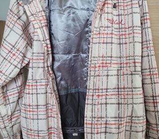 Blouson Chevignon, beige/rouge, Unlimited. Taille M. Très bon état. Imperméable, avec capuche intégrée et poches.
