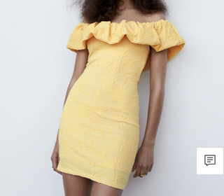 Robe jaune mango taille M , élégante et non transparente avec reliefs, parfaite pour une soirée d'été Elle n'a jamais été porté , avec étiquette d'origine