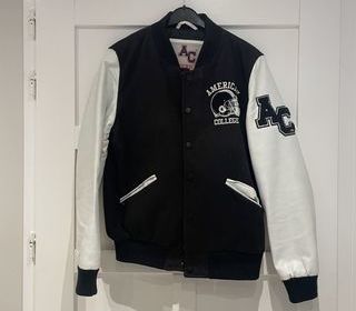 Je vends ce blouson American College Brooklyn New York USA de taille M. - Type de produit : Blouson - Marque : American College - Taille : M - Couleur : Blanc et noir - Caract
