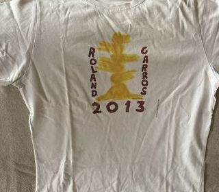 T-shirt blanc avec visuel emblématique du trophée et inscription "Roland Garros 2013? sur le devant. Modèle souvenir, idéal pour les fans de tennis ou les collectionneurs d'articl