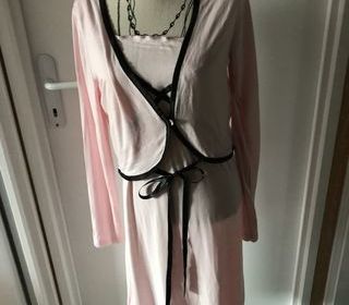déshabillé ROSE & MARRON, 96% polyester et 4% viscose neuf - nuisette rose avec croisé ruban marron sur le devant et liens à nouer, sur le dos e le devant. - caraco Rose et ruba