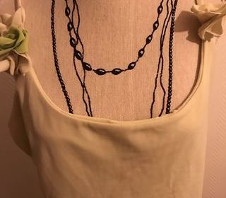 nuisette jaune/olive taille 36 marque BODYONE Bas en pointe, fines bretelles sur laquelle est cousu des roses (voir photo) 100% polyester à retirer sur place envoi possible
