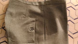 pantalon LM LULU couleur gris clair Taille 38 neuf jamais porté, sans poches devant, et 2 poches plaquées à ¼ de tour vers l'extérieur Fabriqué en France 100% polyester Coup