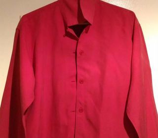 Chemise FEMME en soie rouge " Galeries lafayette " manches longues taille 36 Chemise à col français. Forme droite. Manches longues. Fermeture boutonnée de 4 boutons. Poignets fe