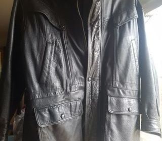 Veste/Blouson en cuir marron foncé, taille 52, avec poches sur le devant , doublé, vintage, en bon état Voir aussi autre manteau en cuir marron, manteau noir, blouson beige, crava
