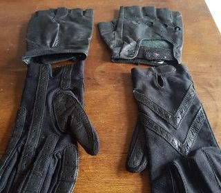 Paire de gant noir en cuir et nylon, isotoner Longueur totale, majeur compris : 21,5 cm Longueur majeur : 7,5 cm Largeur poignet : 8 cm Envoi possible, pour consulter toutes le