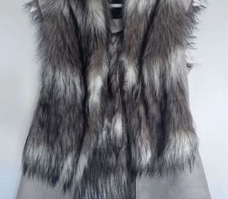 Gilet sans manches Vera & Lucy, fausse fourrure grise, taille M. Effet peluche très doux, doublure satinée argentée. En très bon état, parfait pour un look tendance et cosy cet aut