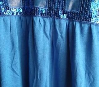 de couleur bleu sans manches motifs sur les bretelles et a la .ceinture