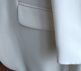 servit une apres midi cette veste blanche fermeture par boutons une poche devant une poche de chaque cote 4 poches interieur.