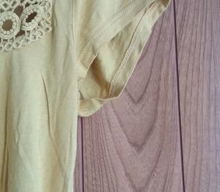 DE COULEUR JAUNE MANCHES COURTES MOTIFS AUTOUR DU COL
