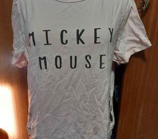 Tee-shirt manches courtes femme Couleurs rose et noir Marque Disney Taille XL Motifs Mickey Matière coton En très bon état Dimensions approximative 64cm de long - larg