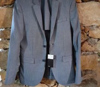 très belle veste homme en petit carreau style vichy bleu taille 44 elle est neuve et a encore l'étiquette c'est la marque H§M