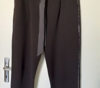 Vends un pantalon large 98 % polyester 2 % élasthanne, ceinture élastique, liens en tissu satiné pour faire un noeud, 2 poches latérales, 2 fausses poches dans le dos, couleur no