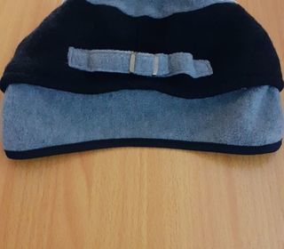Vends une chapka ou bonnet en laine chaude, visière sur l'arrière, couleur noir et gris, marque Nilton's. Diamètre à plat : 27 cm.