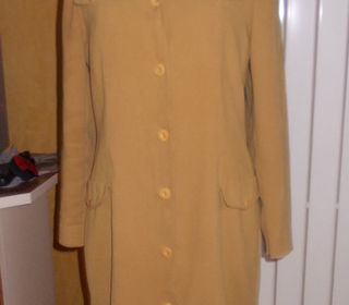 Vends une robe moutarde"un jour ailleurs" fermeture devant par boutonnage - 2 fausses poches + une fausse pochette Très bon état