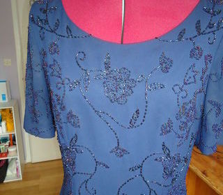 Robe de couleur bleu outremer, entièrement perlée. COUSUE MAIN Longue jusqu'au dessous des genoux. Excellent état