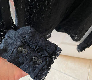 Chemisier dentelle noire 42/44 Boutons manches et patte devant Petit col montant Volant Parfait état neuf jamais porté