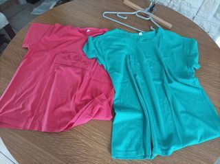 2 Tee-shirt en 100% coton . Taille S --- Déco ' Romantic Flowers with compliments '---Fleurs romantiques avec compliments . Possible vente à l ' unité 4 € TRES BON ETAT ,