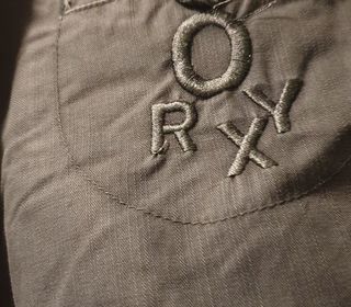 Pantalon femme Roxy vert foncé, Taille 31 (38/40), 100% coton, poche de chaque côté et 1 poche arrière fermée par un bouton.