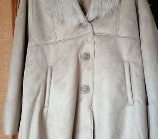 VESTE FAUSSE FOURRURE "GABRIELLA VICENZA" BEIGE femme T 46-48/HIVER - 2 POCHES - 3 BOUTONS DEVANT - DOUBLURE fausse fourrure TRÈS BEAU TOMBE, CHIC ET TRES CHAUD DIMEN
