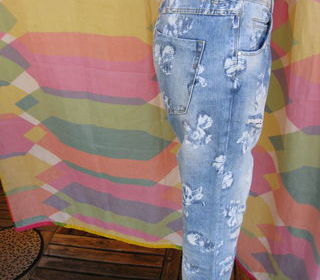 Jean ZARA ( Trafaluc Collection ) taille 40 marqué 38 mais taille plus grand 100% coton authentique denim bleu grande hauteur " Boyfriend" jeans bleu fonce imprime floral craye