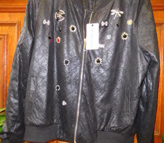 2 - veste teddy neuve noire en polyester et coton aspect légèrement brillant - jolies incrustations sur le devant de pierres façon bijoux - taille 42 - lavable à 30° - deux poches