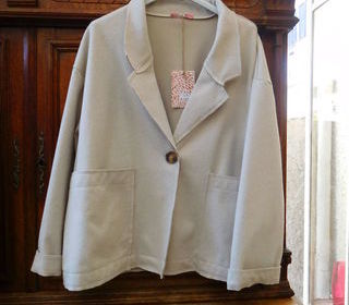 1 - belle veste neuve motif chevron couleur blanc cassé - deux poches plaquées devant - laine polyester et viscose lavable 30 degrés - belle qualité et jolie forme - se ferme par