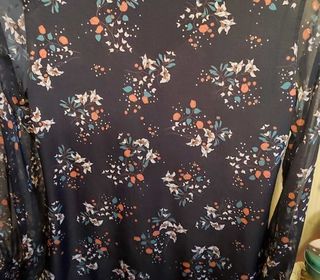 Très joli haut matière infroissable, manches longues voile extrémités froncées. le bas a un lien. détails sur les photos. dégriffé.