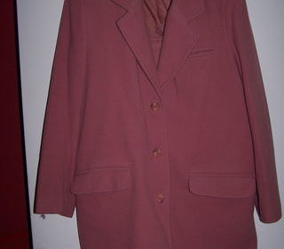 Tailleur Taille 40 veste jupe veste 2 poches à rabat, 1 poche poitrine, bouton décoratif aux manches Jupe fermée par zip derrière, fente à l'arrière vieux rose en laine T