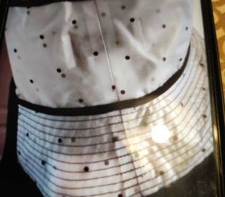 Robe rayée noire et blanc avec bouton sur le bas. Partie supérieure: VISCOSE 80% , POLYAMIDE 20% Partie inférieure: VISCOSE 52% , POLYAMIDE 48%. Jamais porté.Très bon état. Rem