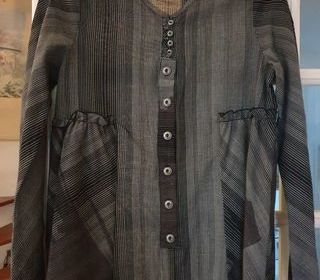 Chemisier noir/gris, manches longues, marque CoCoMenthe, T1 (36-38) ? NEUF Beau chemisier noir et gris, très original, de la marque CoCoMenthe, taille 1 (36-38) ? NEUF, sans étiq