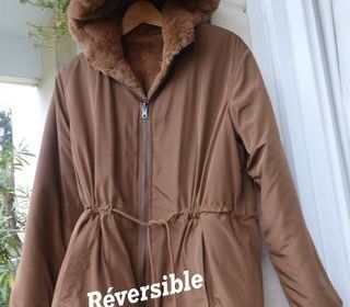 Magnifique parka reversible Pablo pour Gerard Darel couleur camel imperméable d'un côté Fourrure Teddy Bear de l'autre zipée et serrage possible avec cordon poches des 2 côté