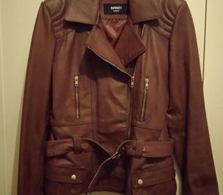 Blouson cuir véritable femme bordeaux, très original ! Avec ceinture.