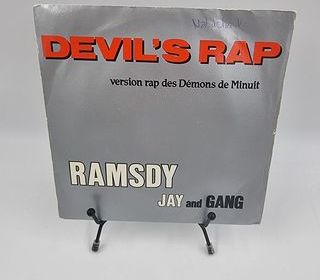 Bonjour, nous mettons en vente ce vinyle 45 tours Devil's Rap : Ramsdy Jay and Gang (Version rap des Démons de Minuit) vendu dans son fourreau d'origine (Fourreau+Disque). État :