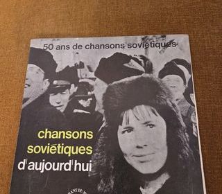Disque vinyle "50 ans de chansons soviétiques - chansons soviétiques d'aujourd'hui", édité par Le Chant du Monde, pochette en état usagé avec quelques traces d?usure visibles sur l