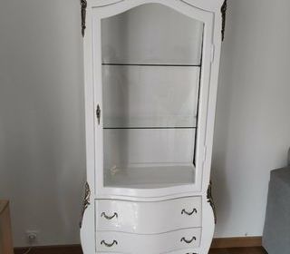 Vitrine baroque style Louis XV en bois de hêtre massif et pin. Il s'agit d'une vitrine de Royal Art Palace vendue 899€ neuve. ( Dimensions: 190 cm de haut x 75 cm de large x 5