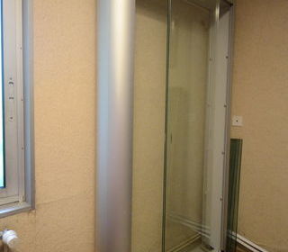 Vitrine alu et verre (L x P x H) : 113 x 22 x 201. Transparente sur deux faces. 7 étagères verres. 2 spots d'éclairage en partie haute Valeur à neuf : entre 1500 et 2000 € Paiem