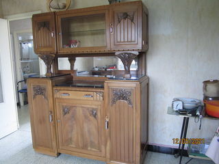 Vaisselier largeur totale 180 (120+60), profondeur 42, hauteur 208= 150€ Table hexagonale avec rallonge, plateau 113 (max 8 personnes) assortie: 100€ Uniquement sur place. Pas de