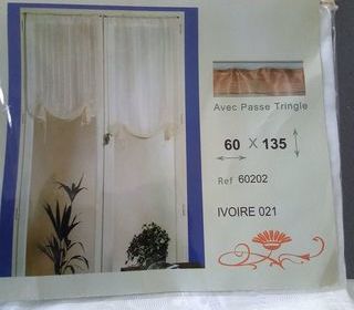 2 paires voilage neuves à passe tringles couleur ivoire 60 x 35