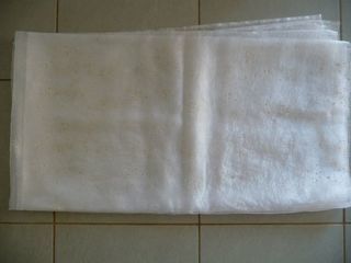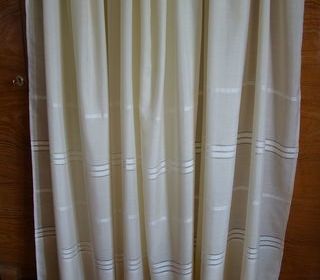 Particulier vend un lot de 8 rideaux voilage à motifs type organza, sans tringles, couleur écru pour briser la vue sans perdre de luminosité. Installation très facile : glisser l