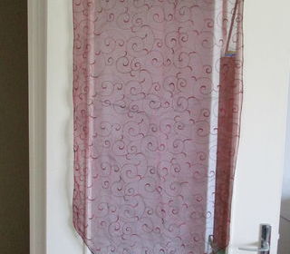 Rideaux (x2). Couleur bordeaux. Très bon état. Longueur jusqu'à la pointe 120 cm. Largeur 60 cm.