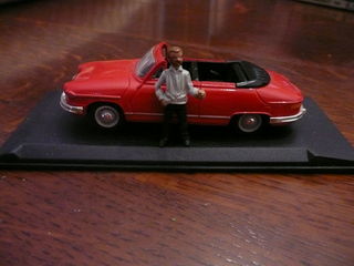 Voiture miniature 1/43 Panhard cabriolet rouge Marque :Compagnie européenne des collectionneurs pour la marque Eligor Vendue avec sa boite et un personnage en métal (conductrice)