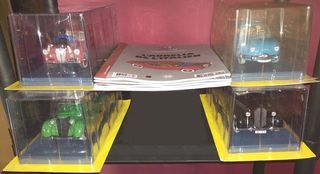 Je me sépare d'une partie de ma collection de voitures miniatures. voiture miniature en métal au 1/43e avec personnages et décor dans sa boîte vitrine plexiglas suremballée de
