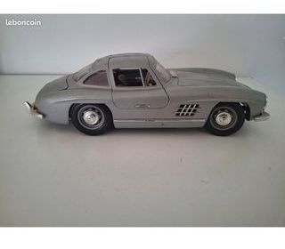Voiture miniature grise en métal, modèle de collection avec détails visibles sur la carrosserie et les roues. Objet présenté en bon état général. 1.18ème Burago
