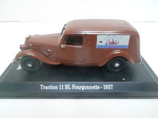 PETITE VOITURE MINIATURE DE COLLECTION / MODELE REDUIT CITROEN TRACTION 11 BL FOURGONNETTE 1937 MARQUE ATLAS ECHELLE 1/43 TRES BON ETAT VENDUE AVEC SOCLE