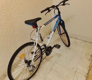 Vélo Rockrider 300 en bon état : taille L, cadre Low Step, 21 vitesses : 3 plateaux, 7 pignons peu lourd : 12kg, pneus : 26 pouces.