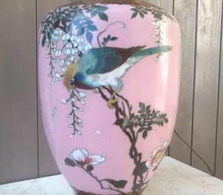 Exceptionnel vase en cloisonné rose monté en lampe dimensions 30 cm de haut sur 15 cm de diamètre poids 1,4 kg couleurs lumineuses Si intérêt l'abat-jours en soie sera donné un